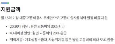 월 15회 이상 대중교통 이용 시, 교통비 ‘실사용액’ 일부 환급