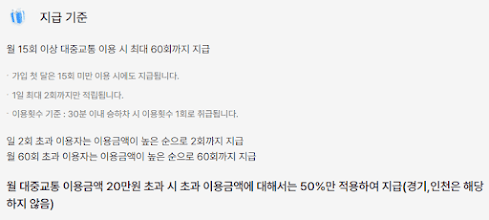 월 15회 이상 탑승은 금방 달성! 교통비 지출이 큰 편이라면, 환급 혜택이 꽤 쏠쏠합니다.