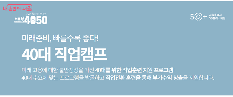 서울시가 40대의 고용 불안을 해소하고 미래 사회에 대비할 수 있도록 '40대 직업 캠프'를 대폭 확대 운영한다고 합니다.