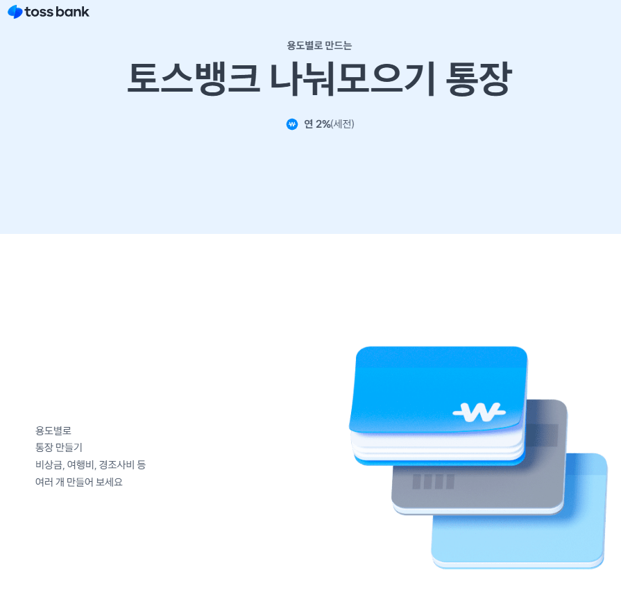 고객 중심 금융 혁신을 주도해 온 토스뱅크는 이후 '먼저 이자 받는 정기예금'. 자동 일복리가 적용되는 '나눠 모으기 통장'등을 번 보이며 고객이 이자를 더욱 효과적으로 활용할 수 있는 금융 환경을 만들어 가고 있다고 합니다.