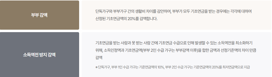 산정된 기초연금액은 가구 유형, 소득인정액 수준에 따라 감액될 수 있습니다.