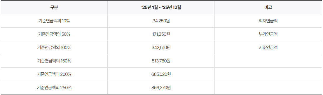 가입기간이 동일하더라도 가입 시기, 가입이력에 따라 A급여액은 다를 수 있습니다.