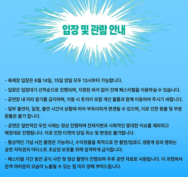 전일권으로만 구매하기 때문에 2일간 축재를 확실하게 즐기실 분이라면 저렴한 가격으로 전일권 블라인드 티켓을 매진되기 전, 서둘러 예매하시길 바랍니다.