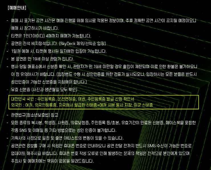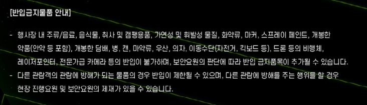 또한 반입 금지 물품, 매너 행동, 금지 행위 등 조심해야 할 것과 챙겨야 할 것들이 있다고 하니 잘 확인하시고 참여하시길 바랍니다.