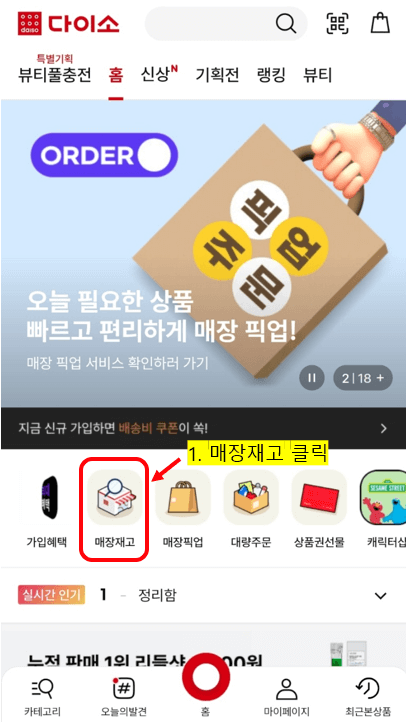 다이소 재고 조회 방법