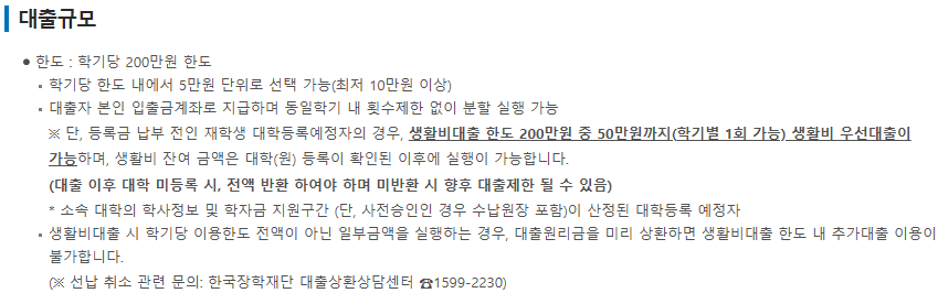 학기당 최대 200만 원, 연간 최대 400만 원까지 대출이 가능합니다.