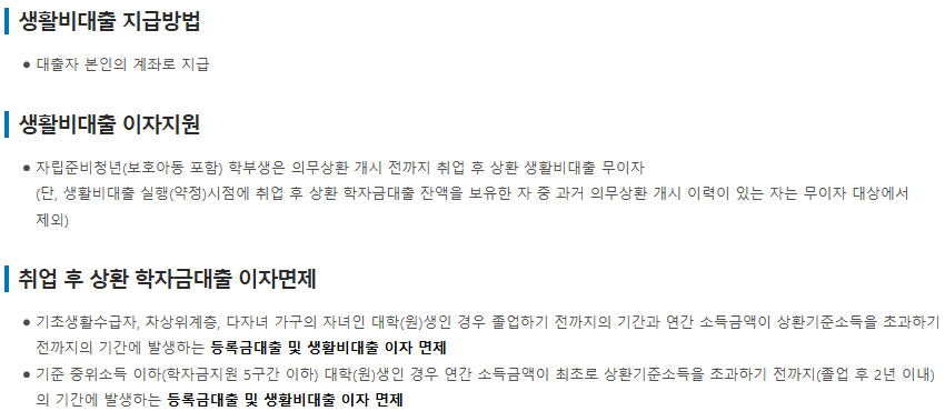 (단, 생활비 대출 실행 시점에 취업 후 상환 학자금 대출 잔액을 보유한 자 중 과거 의무상환 개시이력이 있는 자는 무이자 대상 제외)